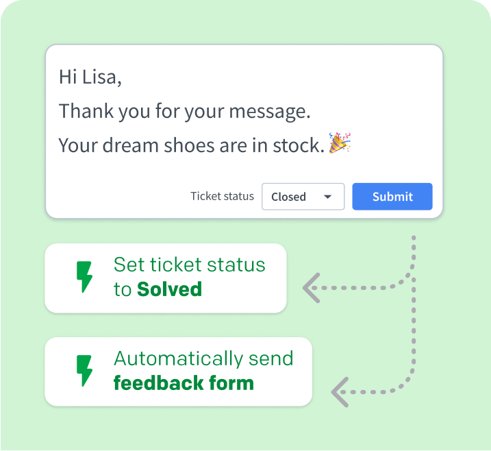 Create your feedback request that will be sent after you solve a ticket. Give your customers a chance to tell you what they think.