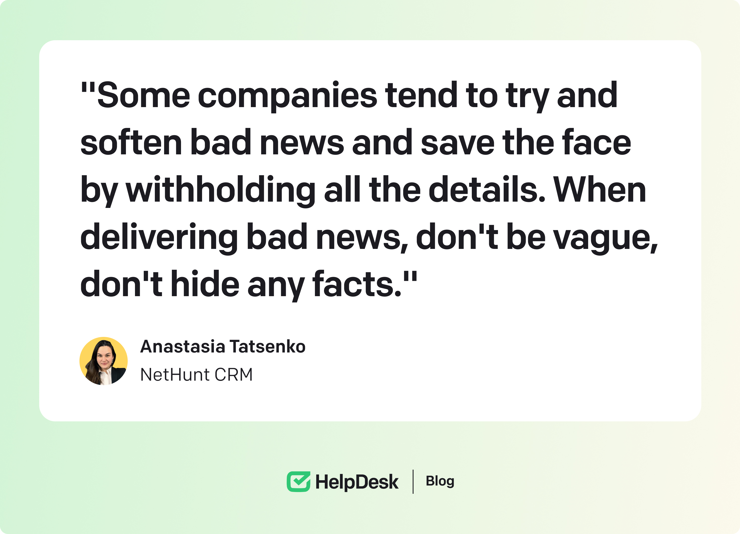 A word of acknowledgment and empathy goes a long way. So, you should put yourself in your customers’ shoes and understand how you’d feel if you faced an issue with your favorite brand. Once you’ve gotten hold of the feelings, you should write an apology that validates their emotions instead of being defensive.