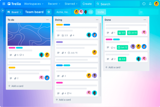 Kanban board for task management.