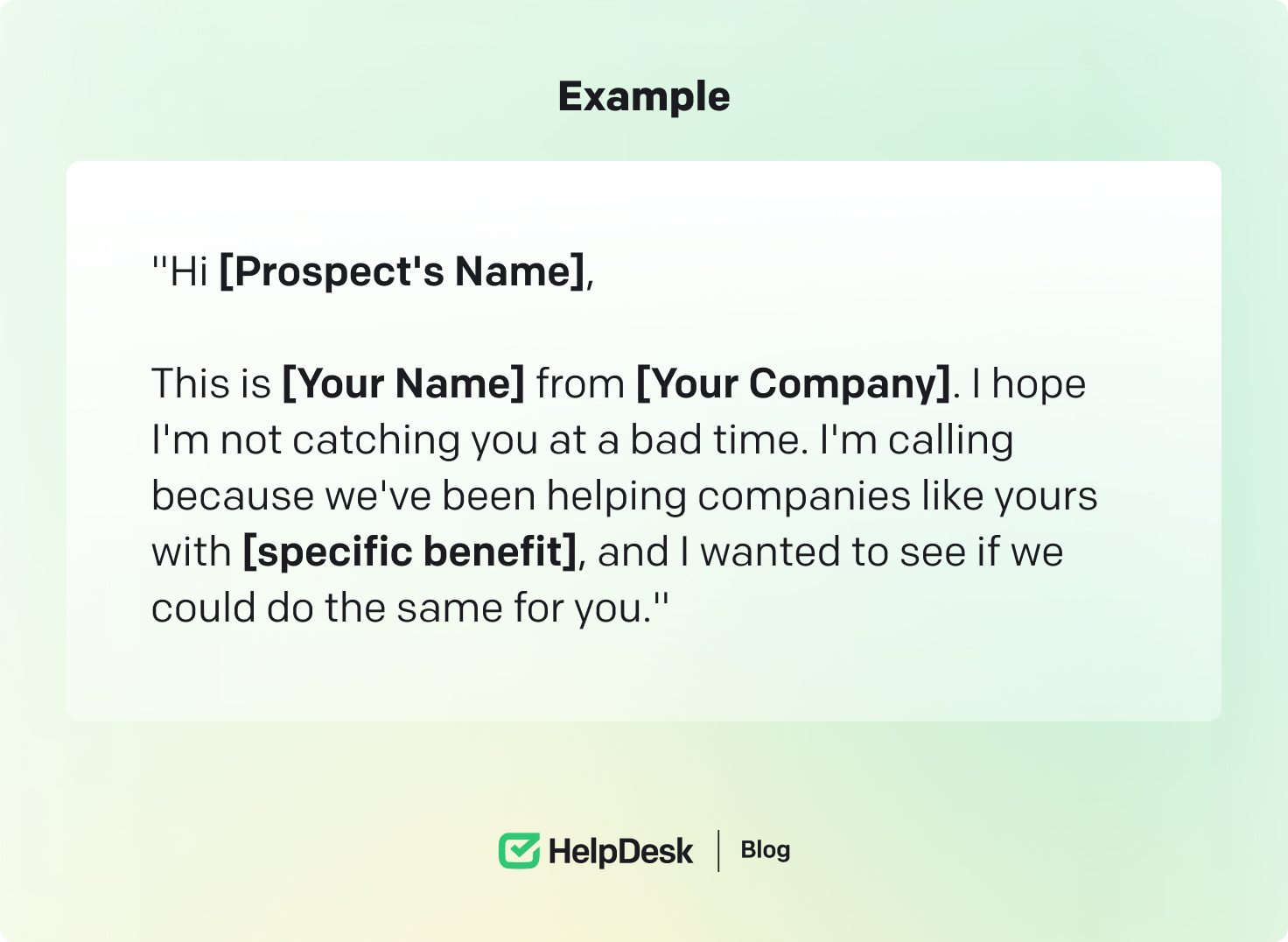 - “Hi [Prospect’s Name], this is [Your Name] from [Your Company]. I noticed [specific recent achievement or challenge] at [Prospect’s Company], and I believe our [product/service] could help streamline [relevant process] for you.”