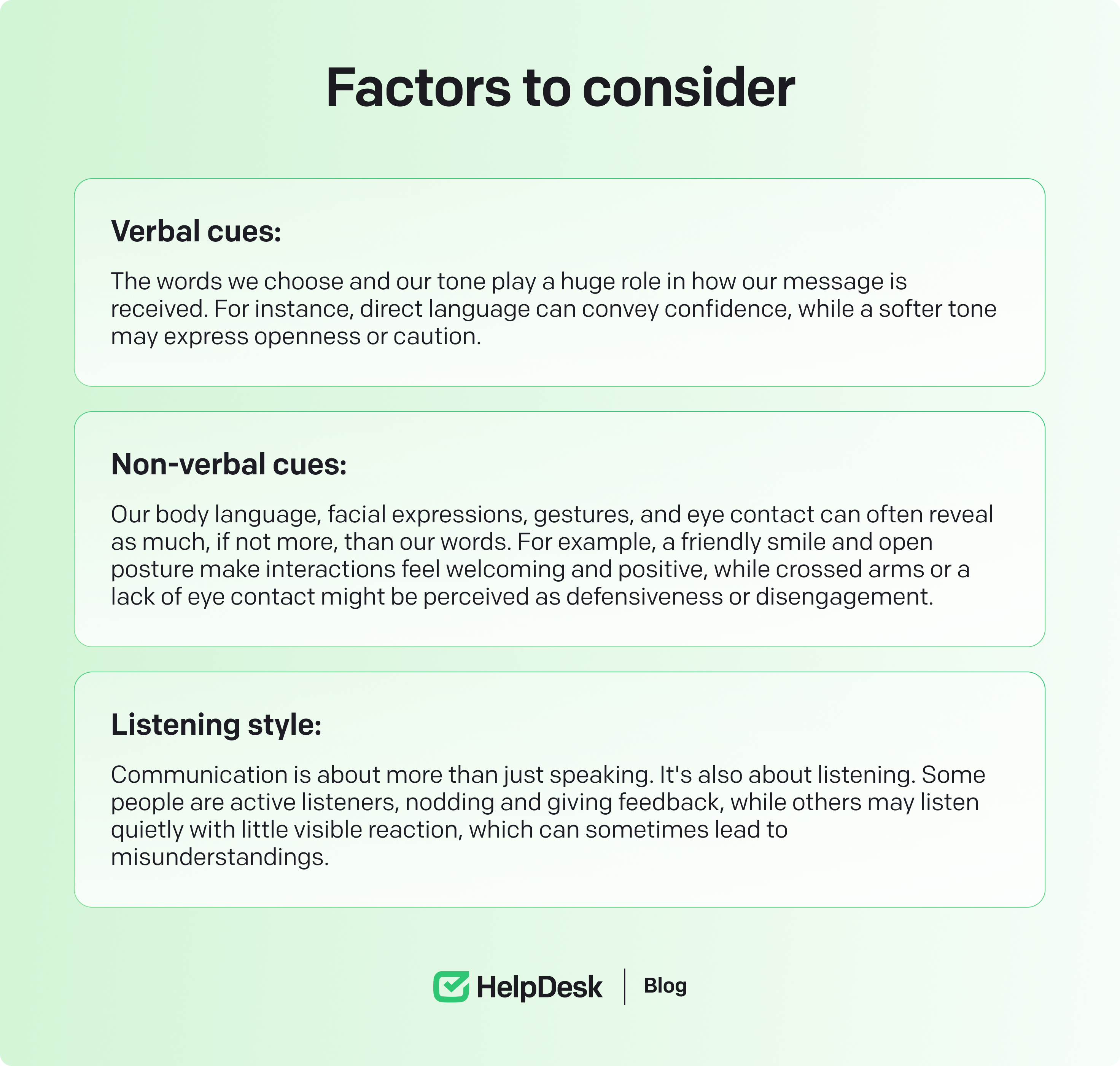 Nonverbal cues can vary widely across cultures. What’s considered respectful or positive in one culture may be seen as rude or aggressive in another.