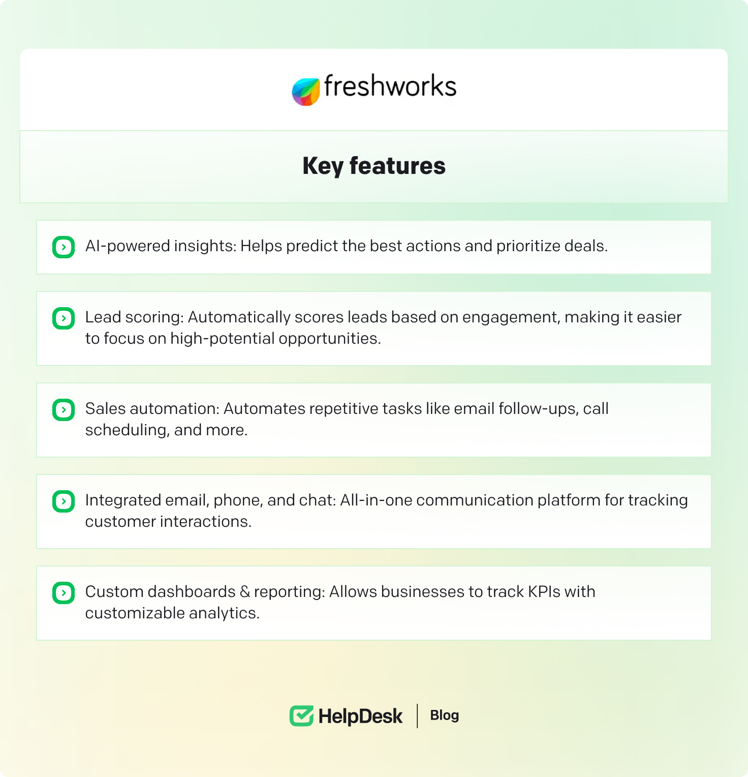 Best for: Freshworks CRM is ideal for small to medium-sized businesses looking for a simple, AI-driven CRM that scales with growth.