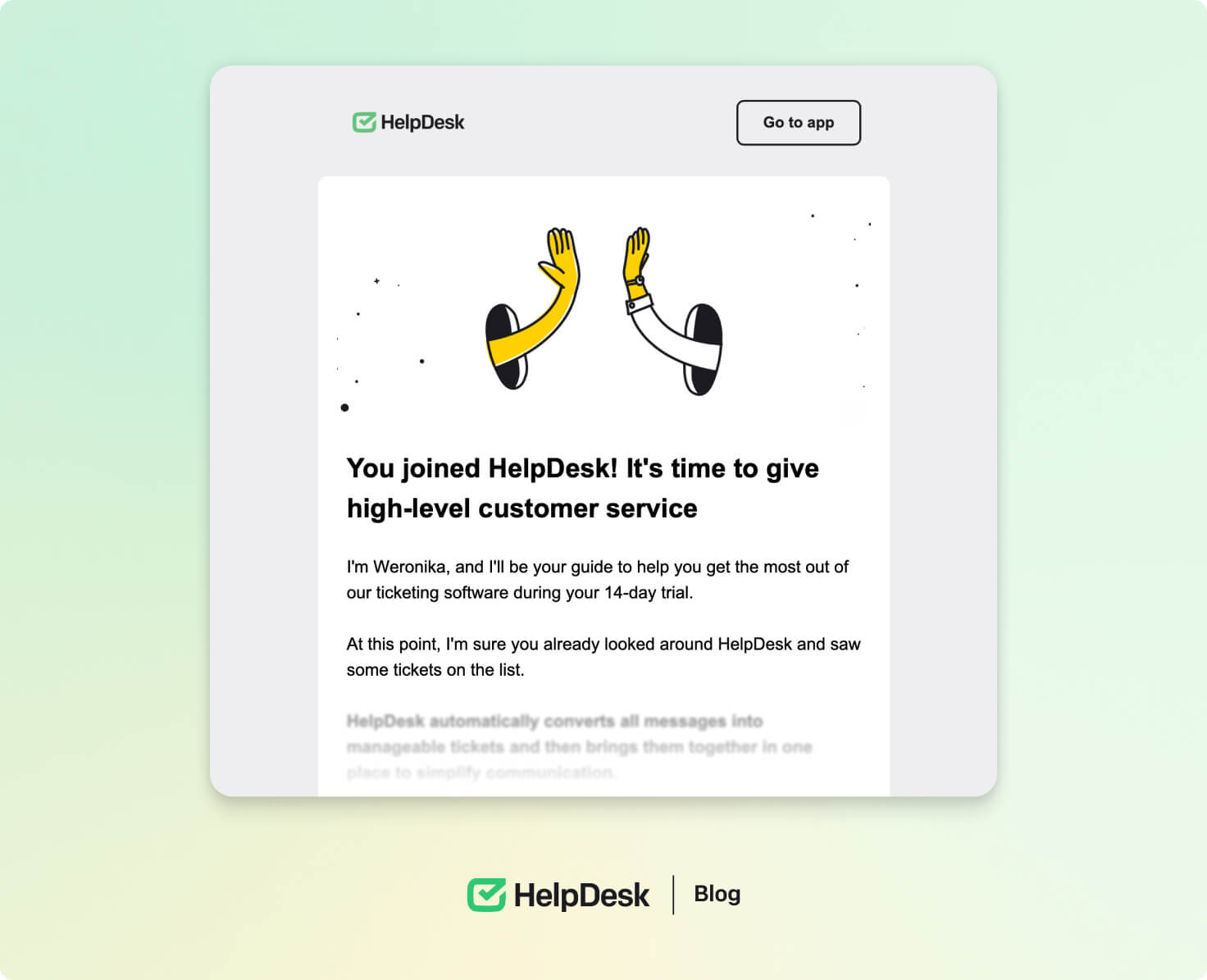 Experience the perfect customer onboarding with HelpDesk. 🤝 Join our tool for a free 14-day trial. 👏
