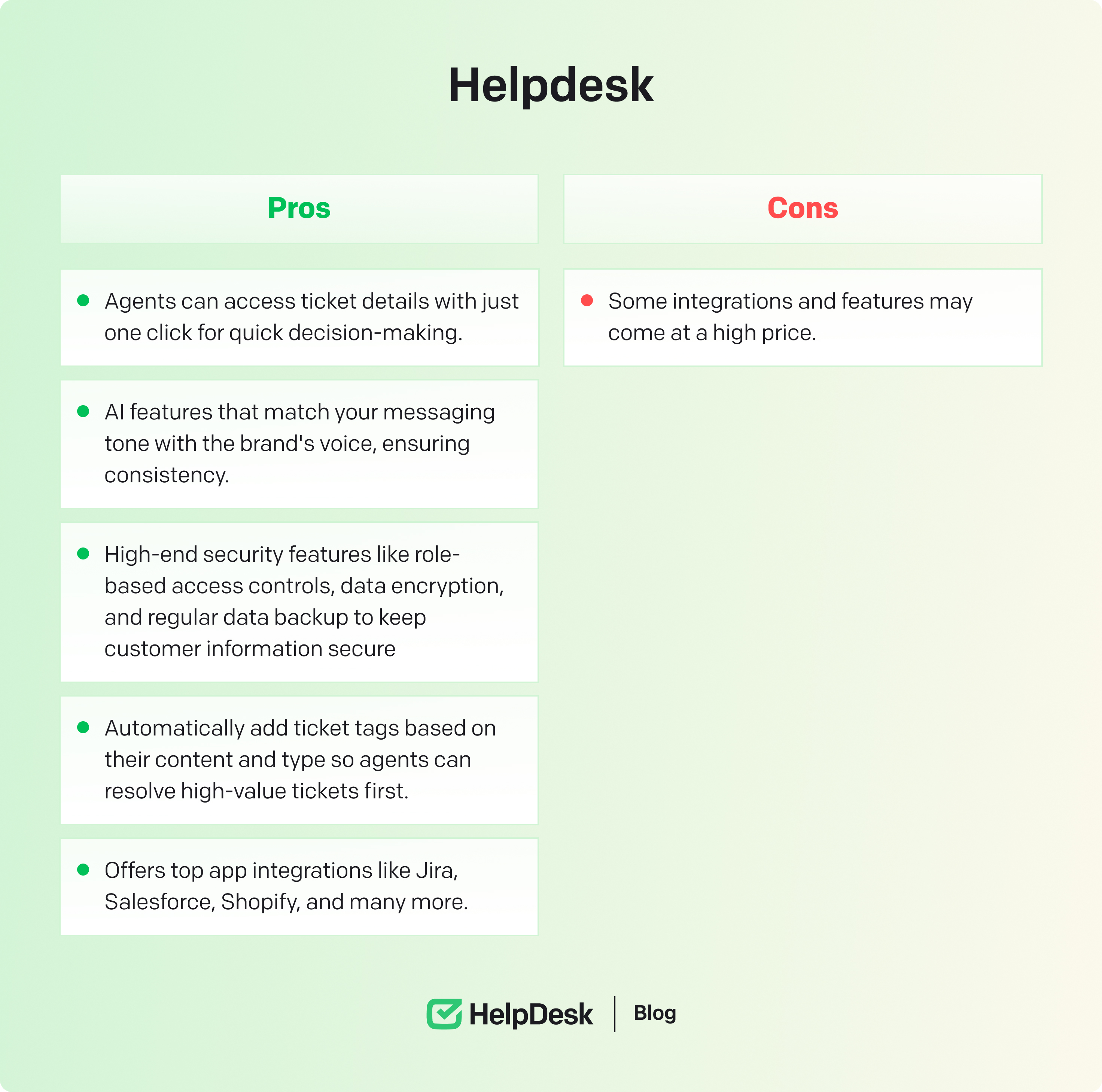 If you’re looking for the perfect solution, HelpDesk is a fantastic option. It strikes a beautiful balance between features and affordability, empowering you to utilize AI and automation to swiftly meet customer needs without stretching your budget.