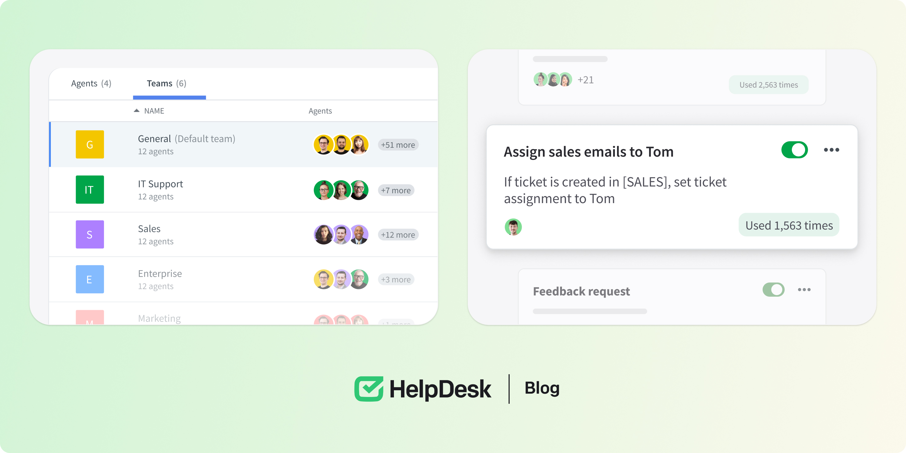Automation for routine tasks: HelpDesk automates repetitive processes such as assigning tickets to specific teams, tagging, or prioritizing them based on predefined rules.
