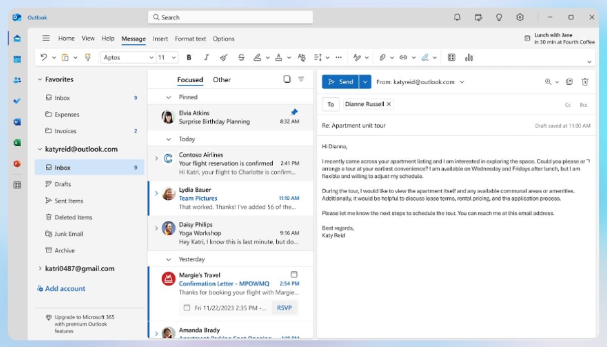 Integrated calendar and scheduling: Outlook’s built-in calendar allows users to schedule meetings, set reminders, and manage appointments directly from their inbox.