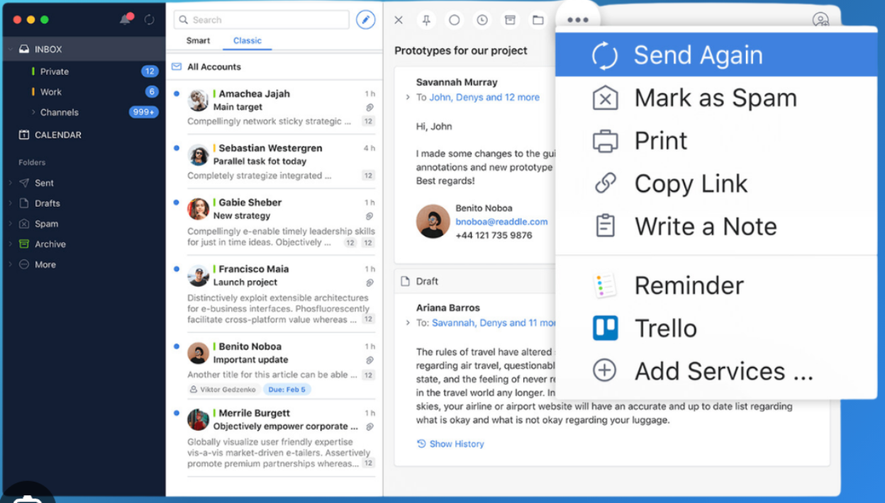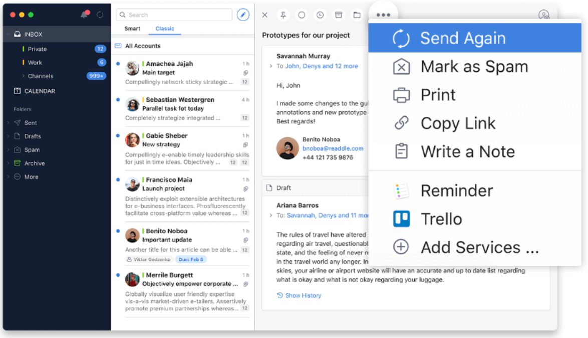 Shared inboxes: Spark allows multiple team members to access and manage shared inboxes, streamlining workflows for customer service or project-based tasks.