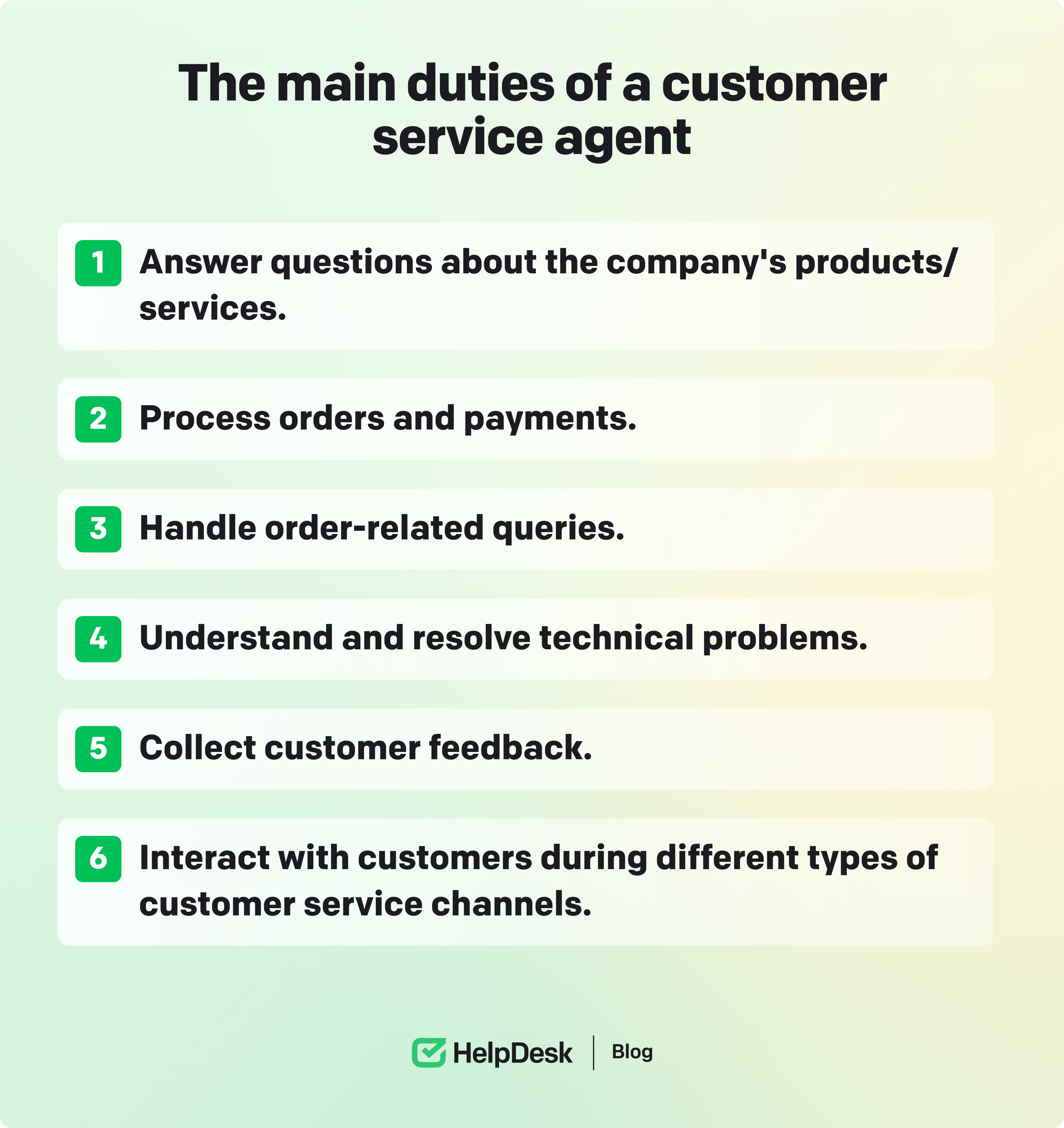 A customer service representative needs a good balance of technical and soft skills to proactively perform daily customer service management tasks and memorably interact with customers. They should be able to understand the technical complications the customer is sharing and then assist them with the proper fixes in a friendly and professional manner.
