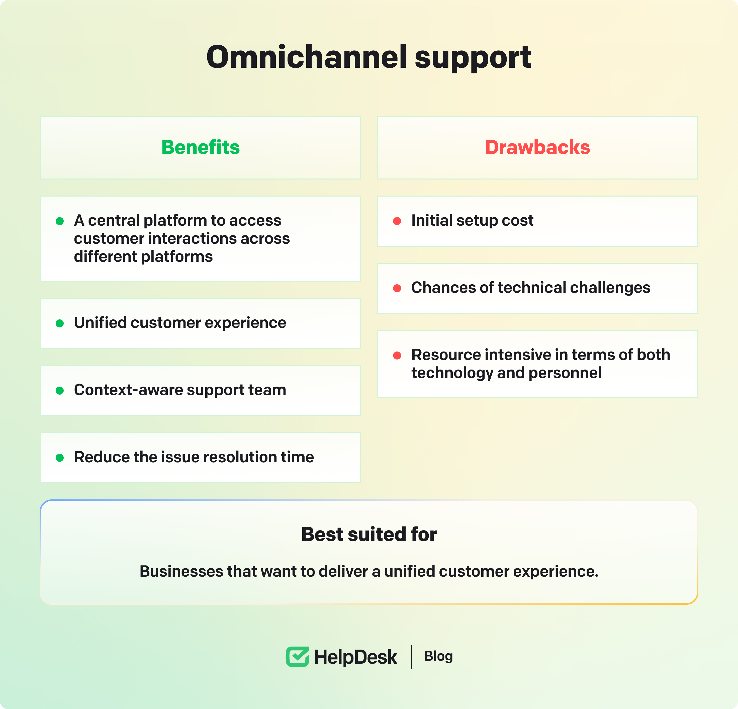 Omnichannel support connects conversations from channel to channel without losing context. Simply put, a single platform aligns all customer conversations across all communication channels. For example, suppose a customer begins a conversation on social media and follows up through email or live chat. In that case, the customer service reps can see all the past discussions through a central platform.