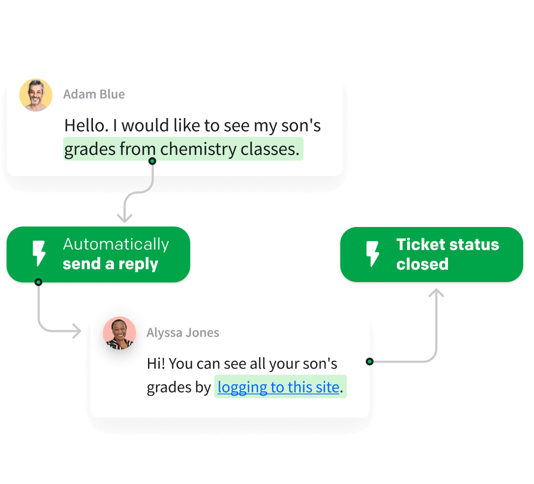 Reduce wait times and accelerate issue resolution by creating workflows. Use macros to ensure that students receive accurate and consistent information regardless of who's handling their queries.